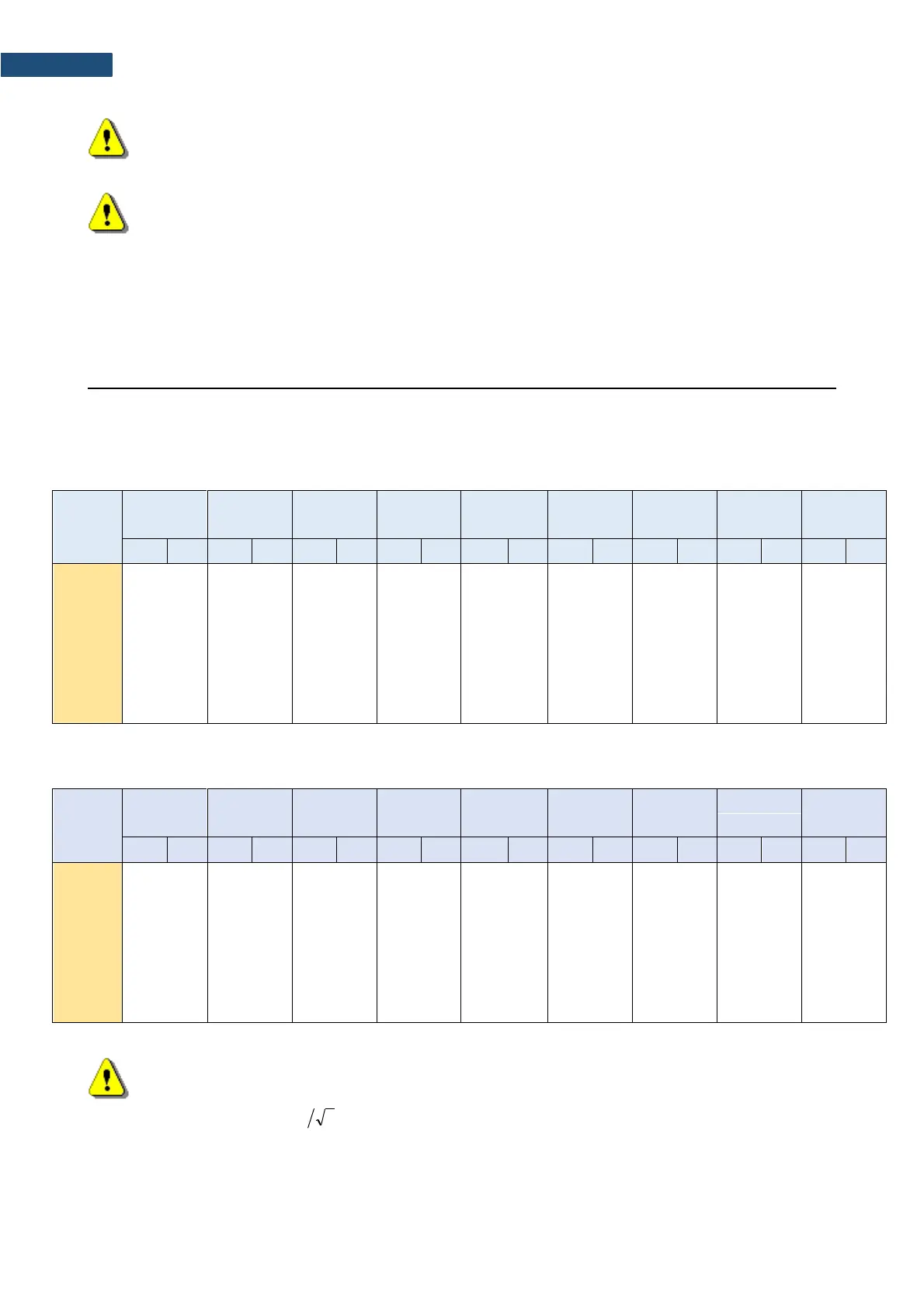 Table C.1.2. Linear operating range: „HIGH“ (primary level range) for the sinusoidal signal and