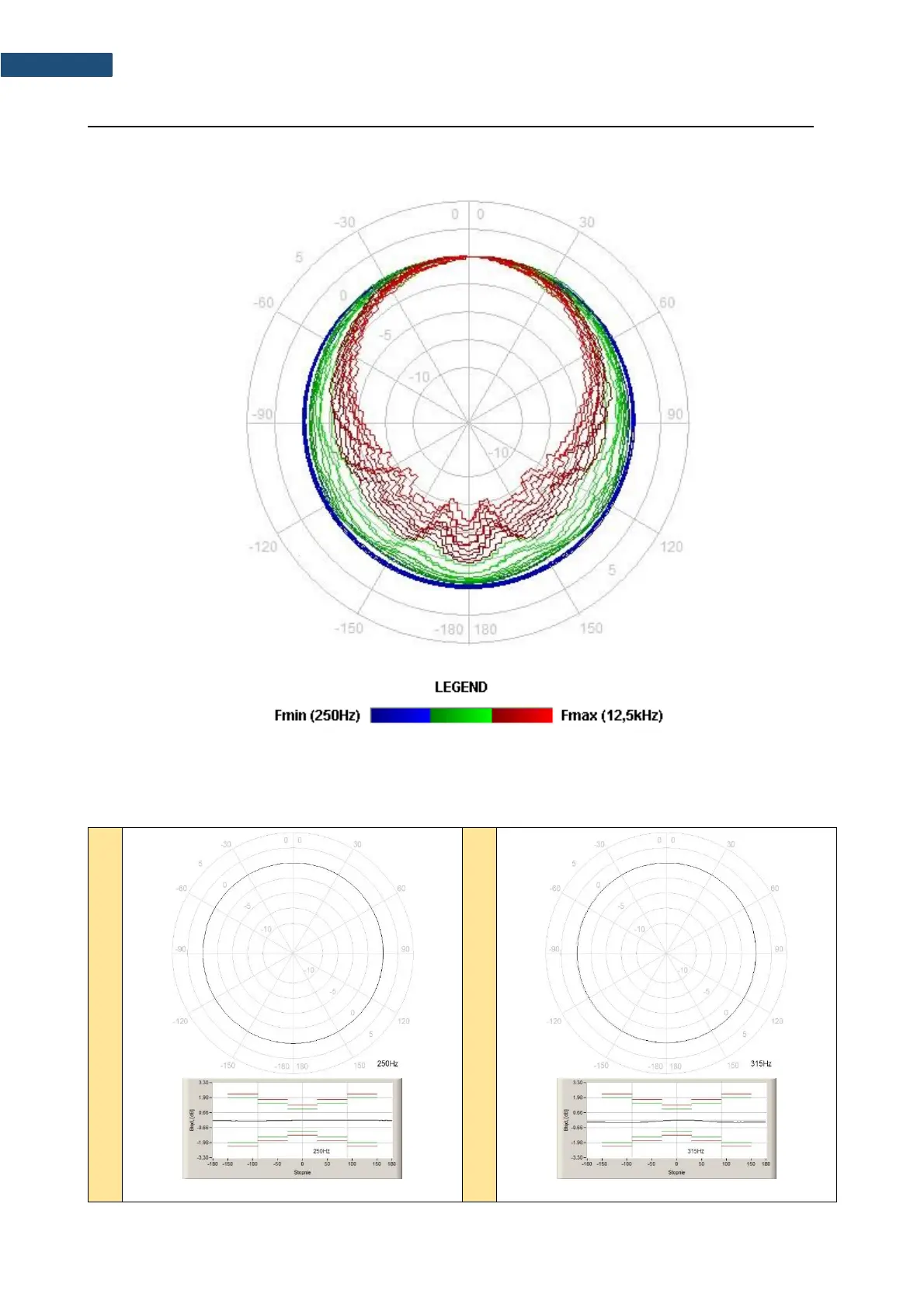 The round charts show the directional characteristic and the charts below shows the errors for angles.