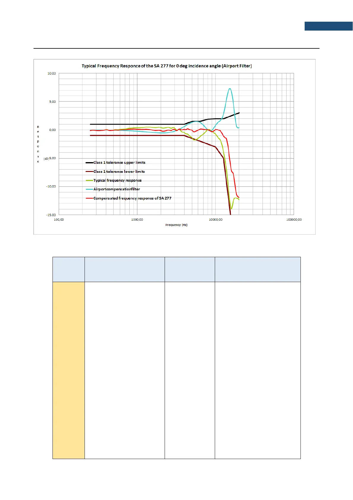Table C.7.11 SVAN 977A with SA 277 frequency response (0 deg incidence angle)
