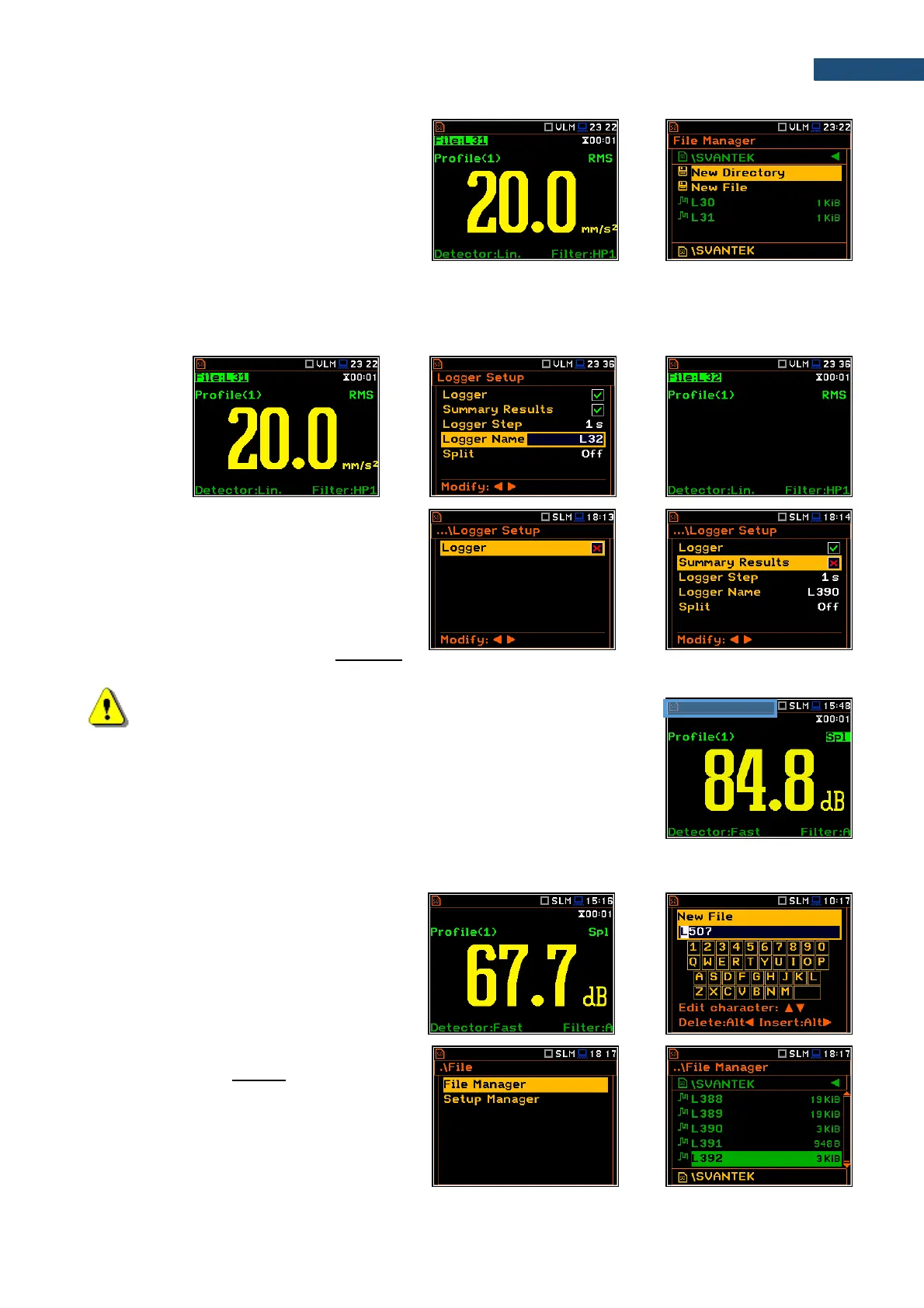 name with the increased number. Pressing <ENTER> will return the instrument to the measurement screen with