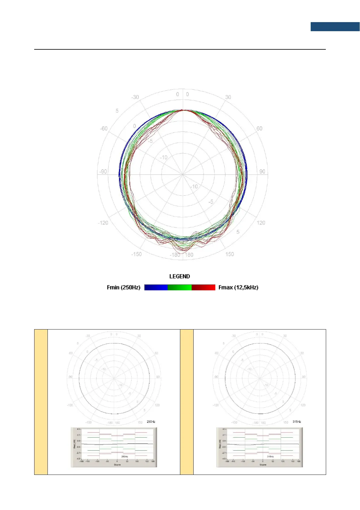 The round charts show the directional characteristic and the charts below shows the errors for particular