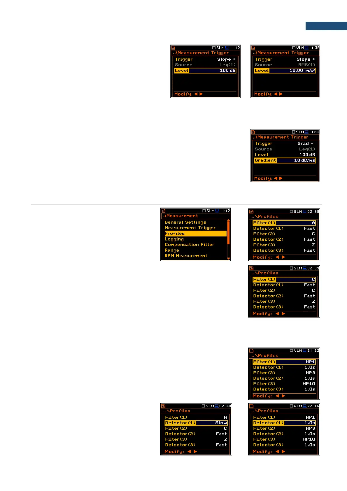 <Menu> / Measurement / Profiles) compares