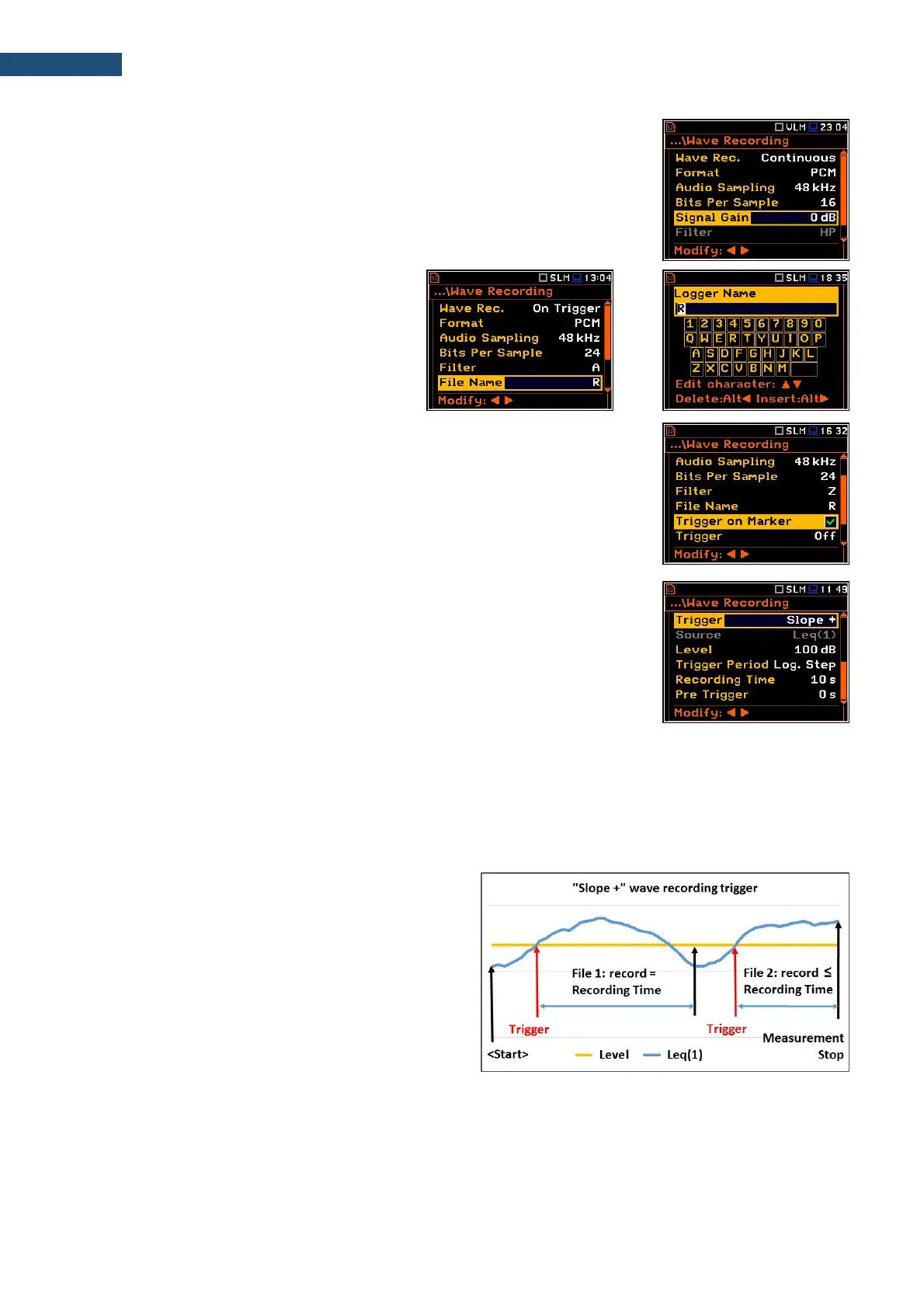 condition is met starts recording. Recording lasts minimum Recording Time and during this time the instrument