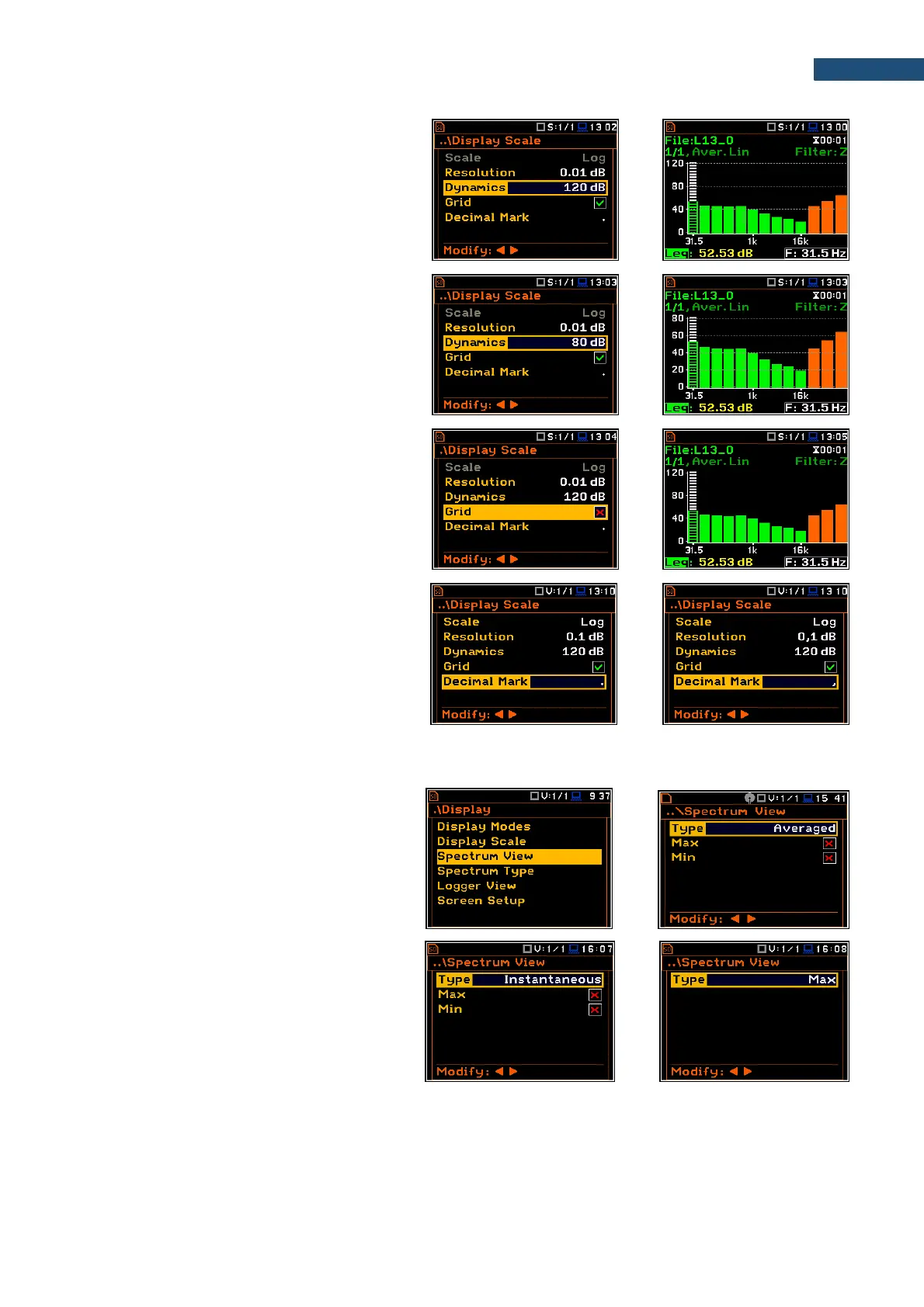 In the Spectrum View screen, you can select