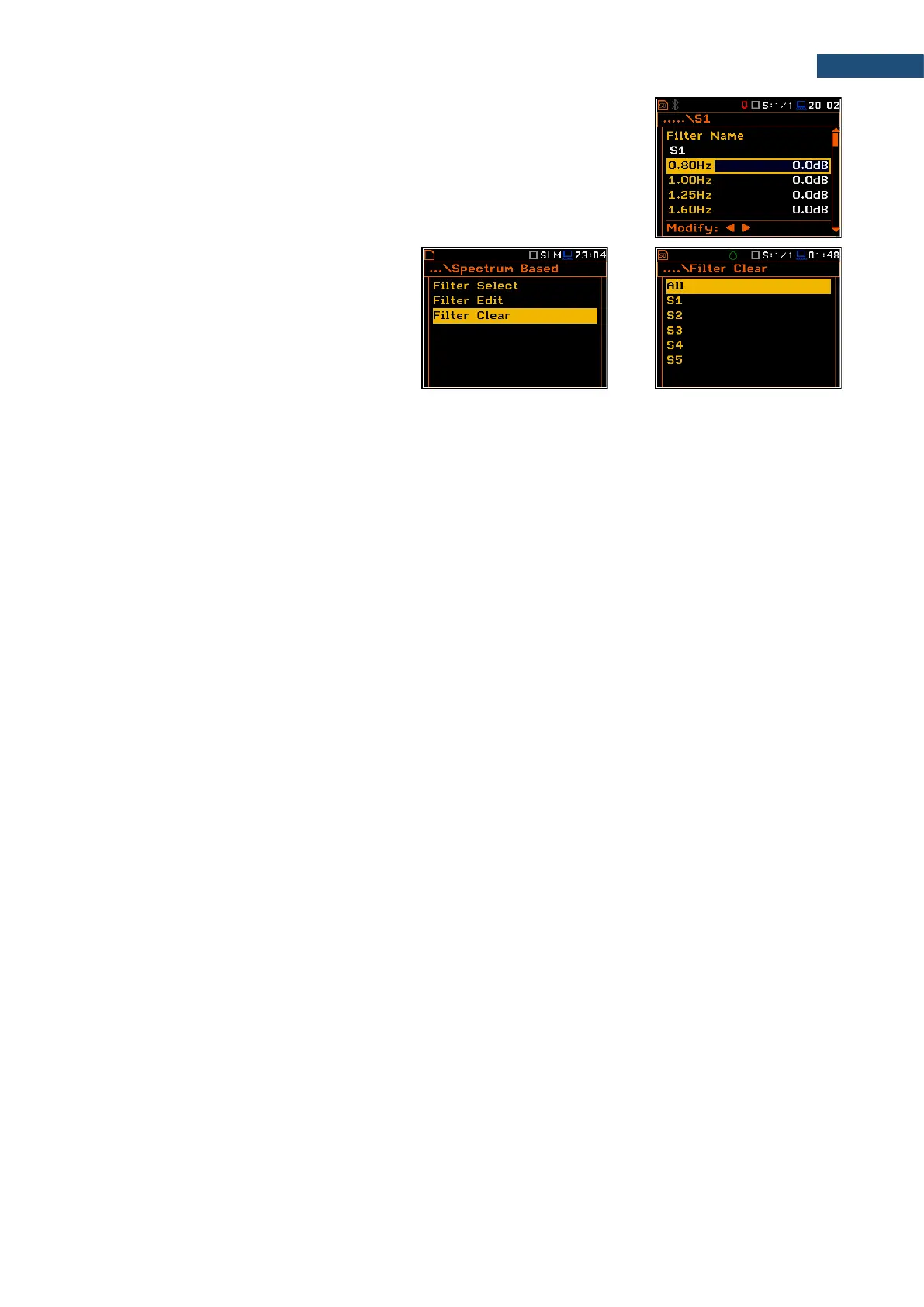 third octave filters. It is possible to clear all