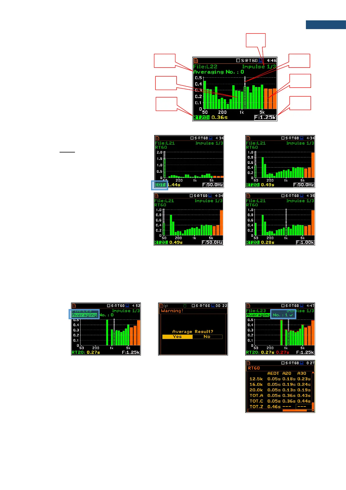The Averaging field enables averaging of the reverberation time results from several measurements.
