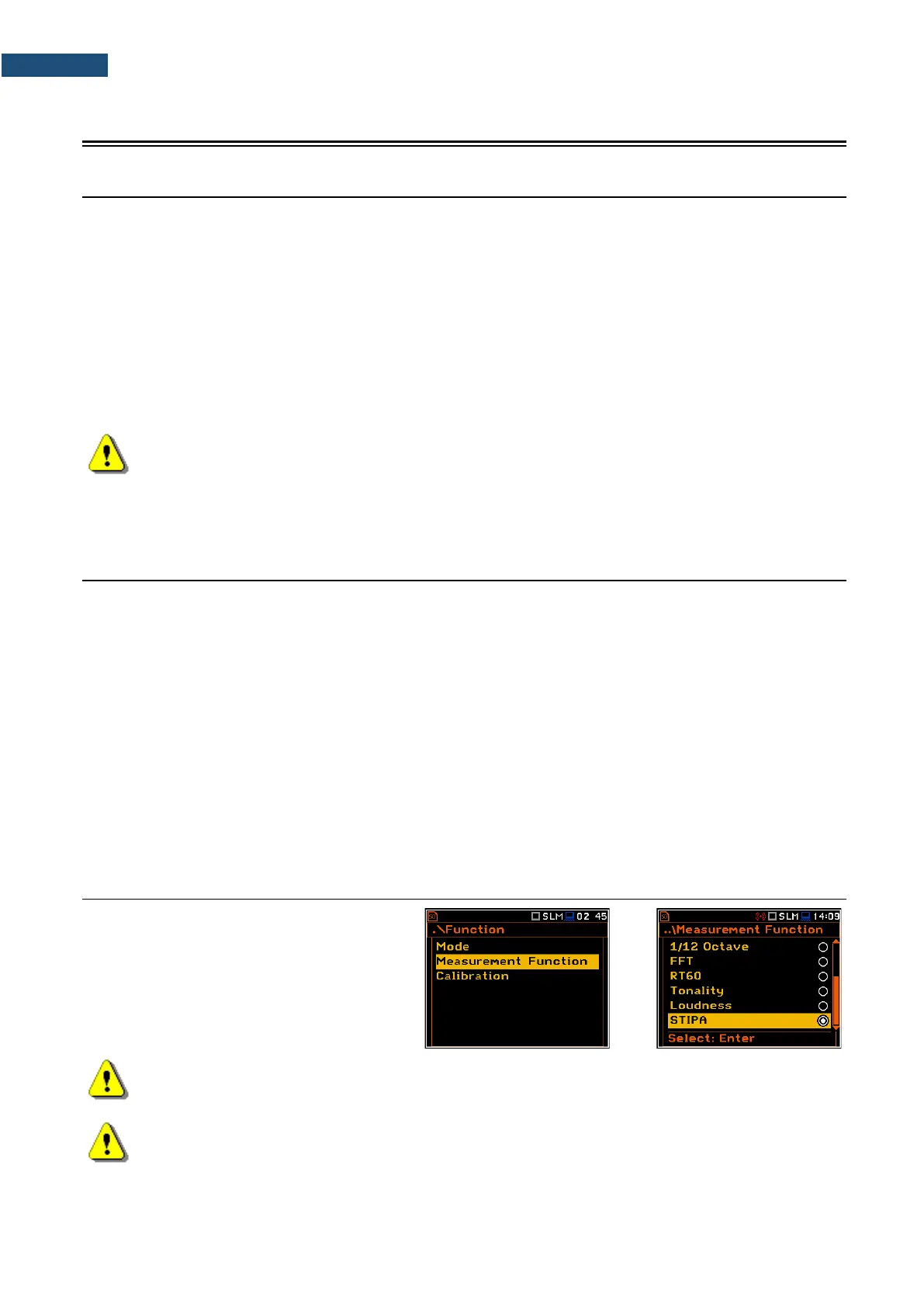 Note: The STIPA function is optional and should be unlocked by entering the activation code in the
