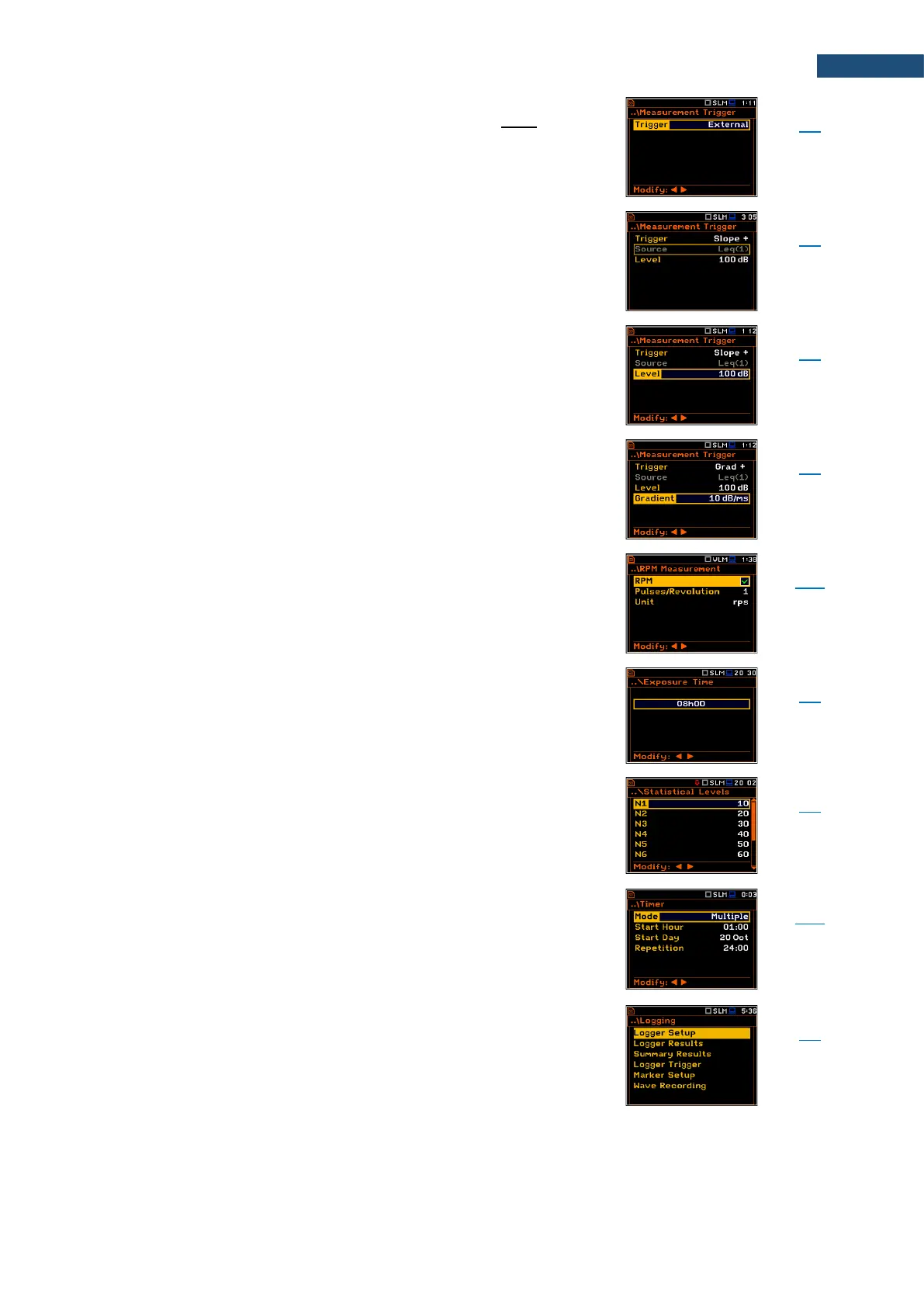 value (Level) for triggering – RMS measured in the first