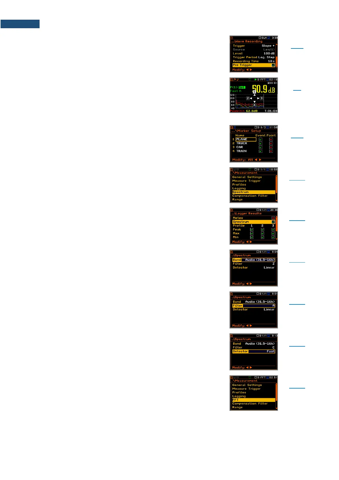 - 1/12 Octave analysis: Linear, Fast or Slow for sound