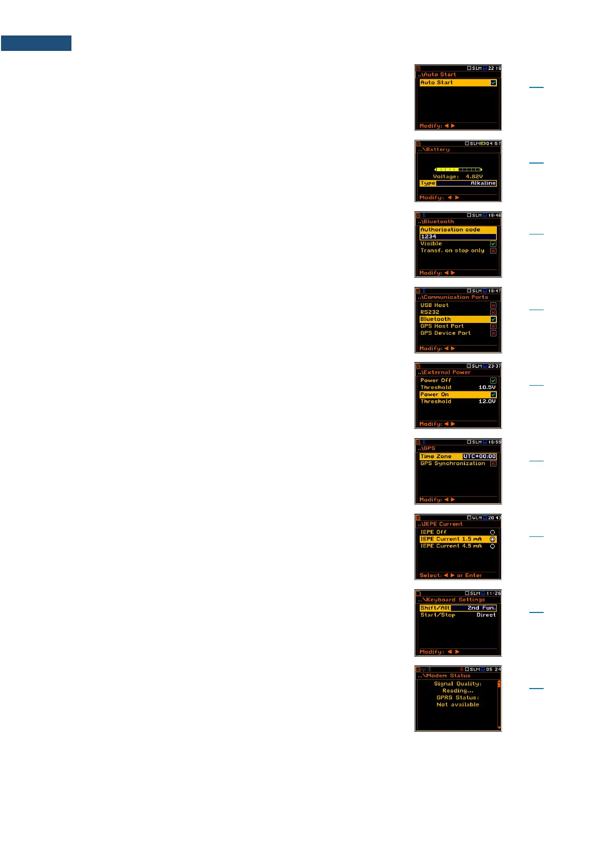 Screen allowing you to check the instrument power