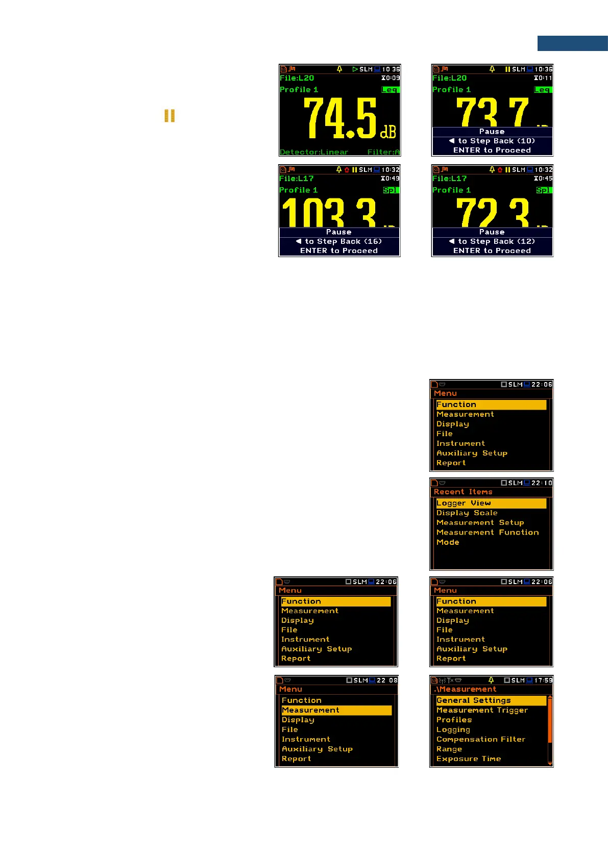 To configure a measurement or the instrument, use the menu mode, which is switched with the <Menu> key.