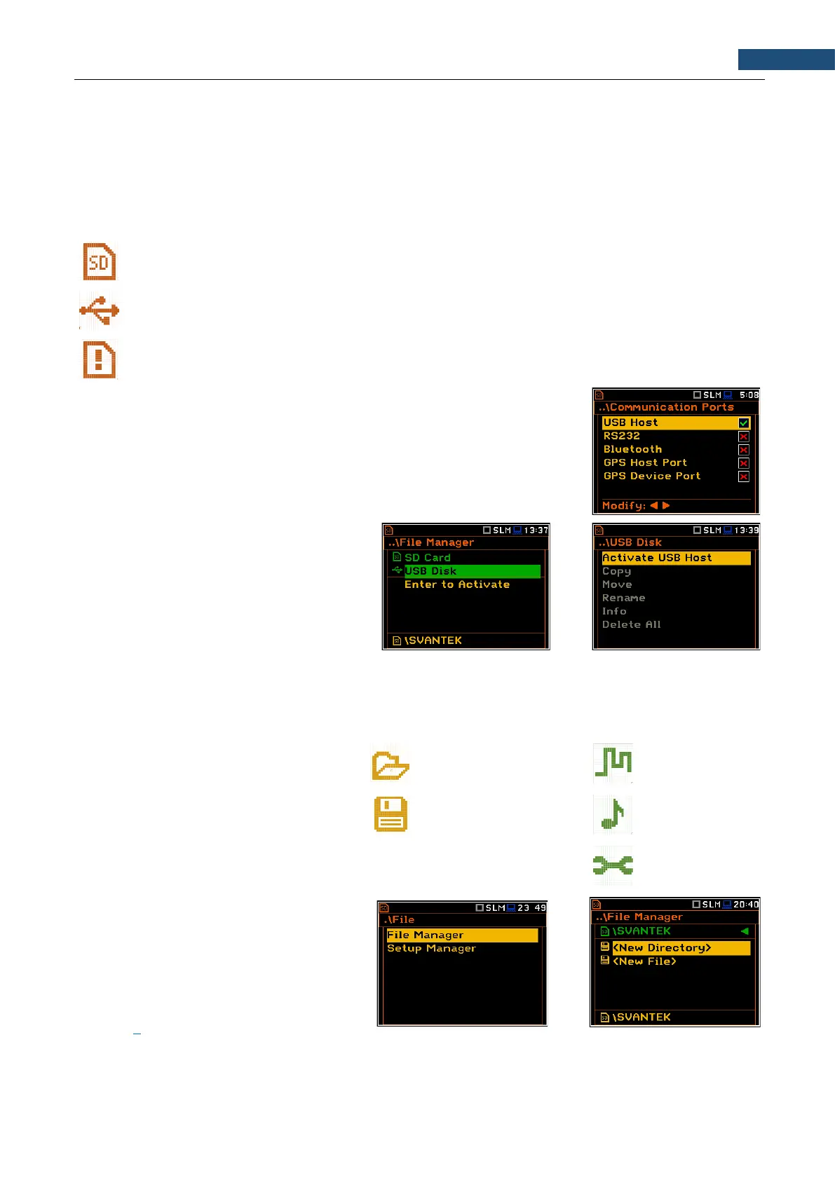 The SD Card and USB Disk memories are organised as a standard memory with directories and sub-