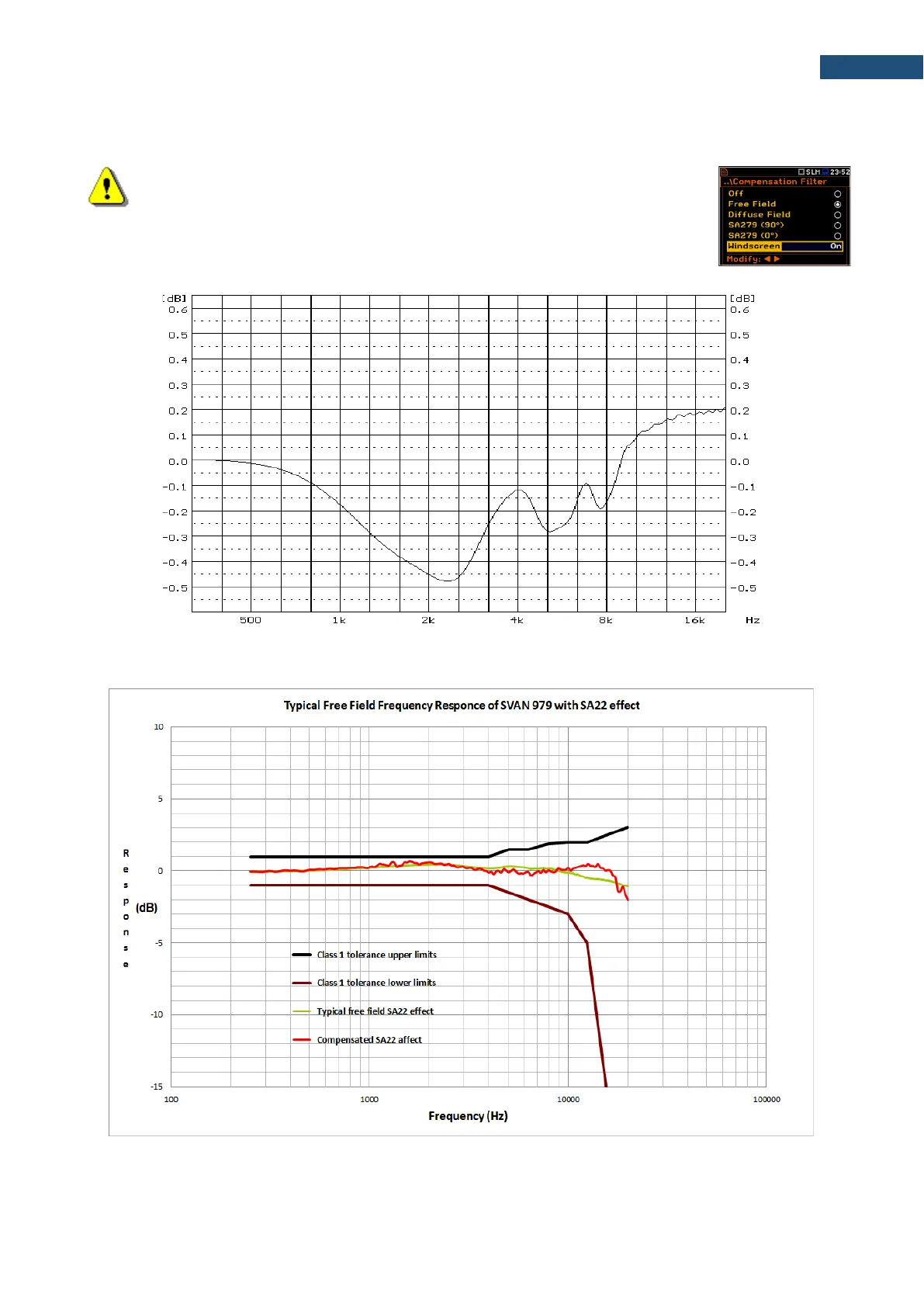 Note: When using windscreen SA22 the “Windscreen” compensation filter