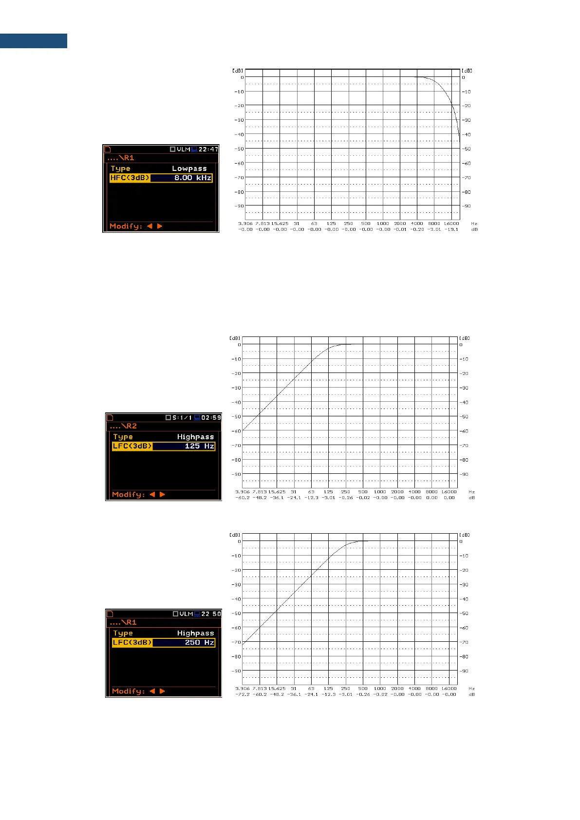 Characteristics of the Highpass filter with the LFC (3dB) = 125 Hz implemented in the instrument