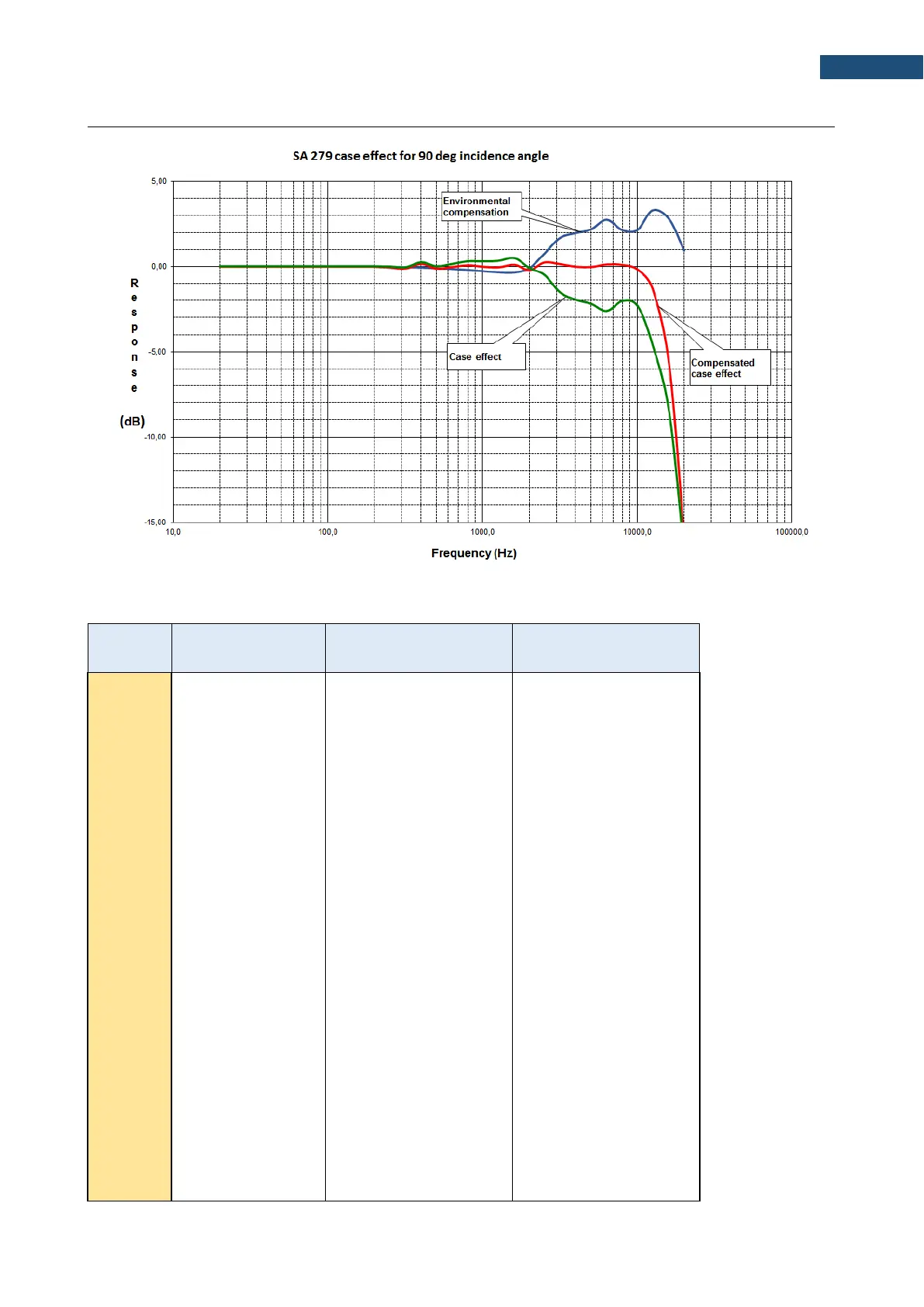 Table C.7.6 G.R.A.S. 40AE frequency response and SA 279 case effect (90 deg incidence angle)