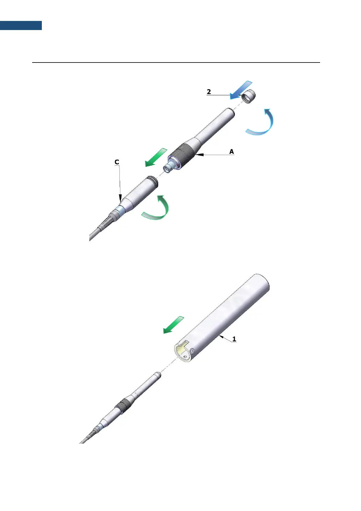 1. Secure preamplifier (A) with the dummy microphone (2) and connect the cable (C).