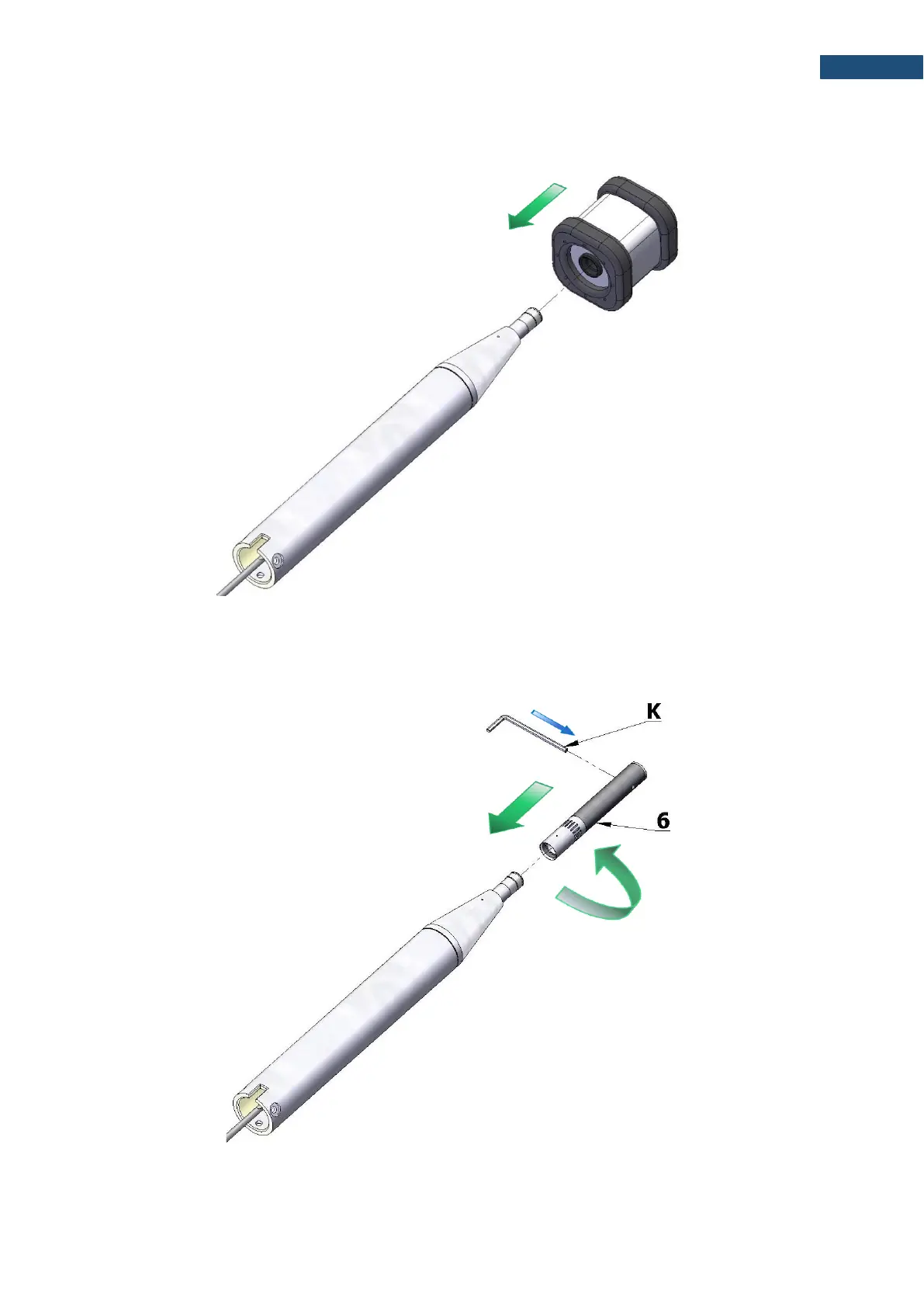 8. Install the microphone protection tube (6). Use the Allen key (K) as a pin at protecting tube orifice.