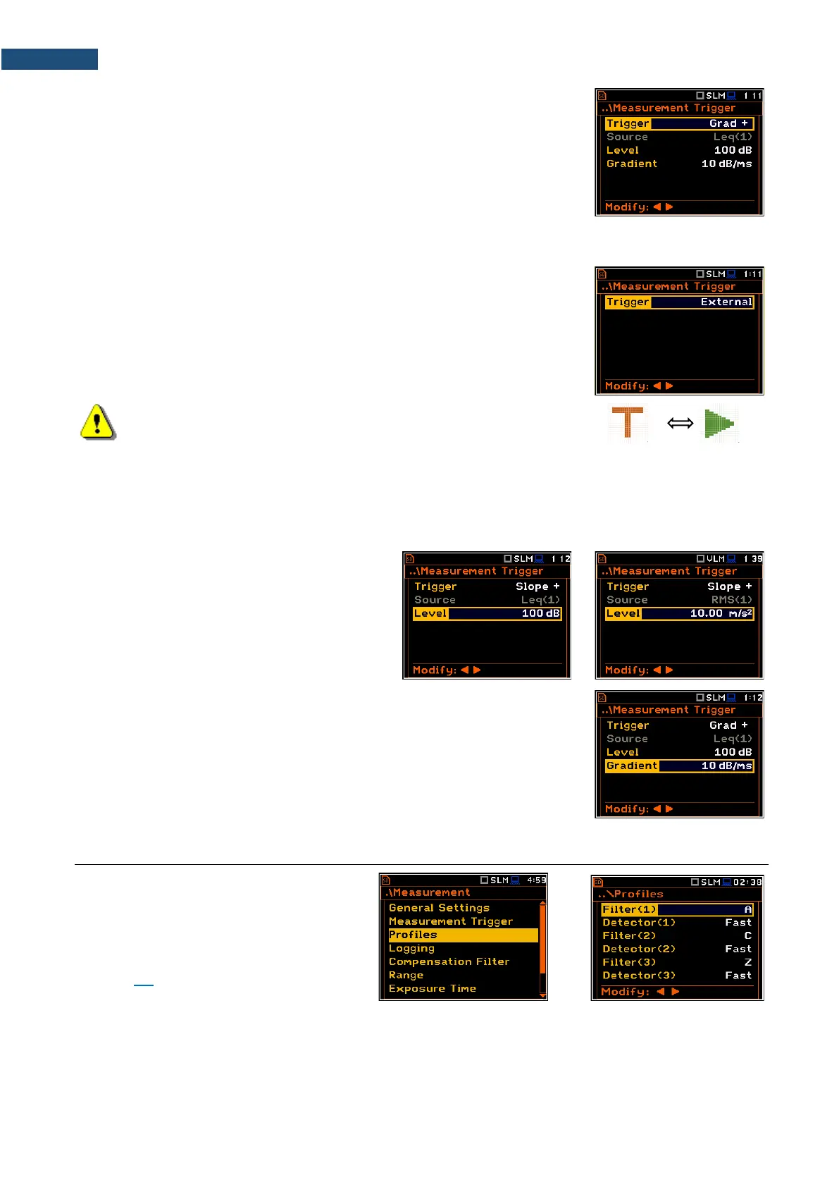 trigger the “trigger” icon appears alternatively with the „measurement”