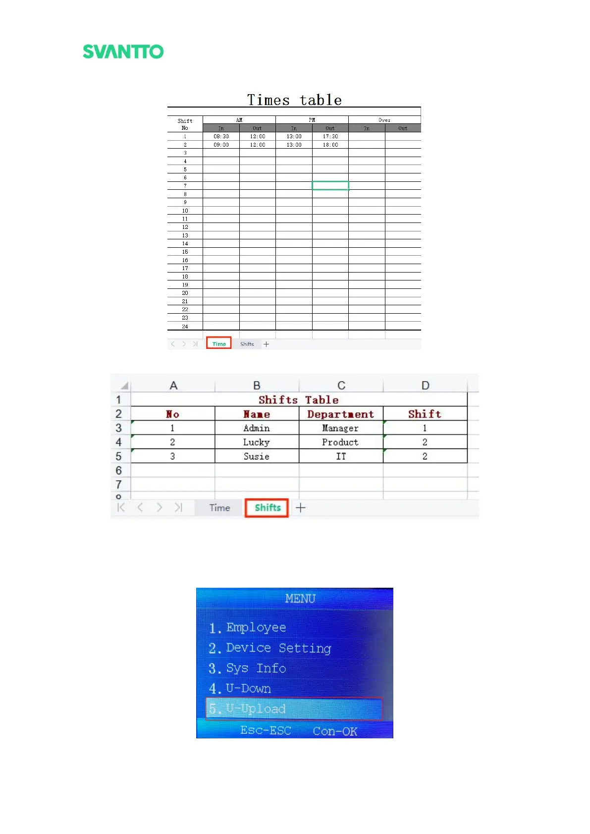 Figure 3-17 Shift Time Setting Table