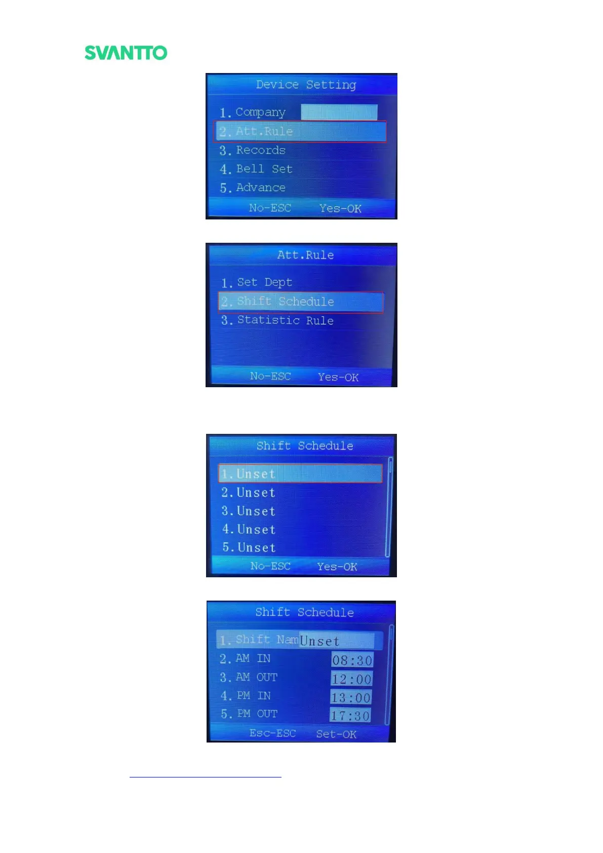 3) Select any schedule, press [OK] key to enter the interface of time zoom and name settings of shift