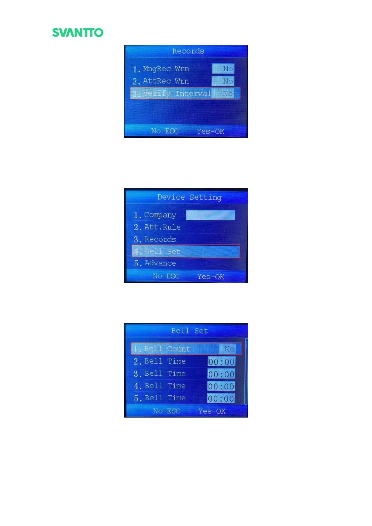 the set time point. Select the [Bell Set] and then press the [OK] key to enter the “Bell Set” interface.