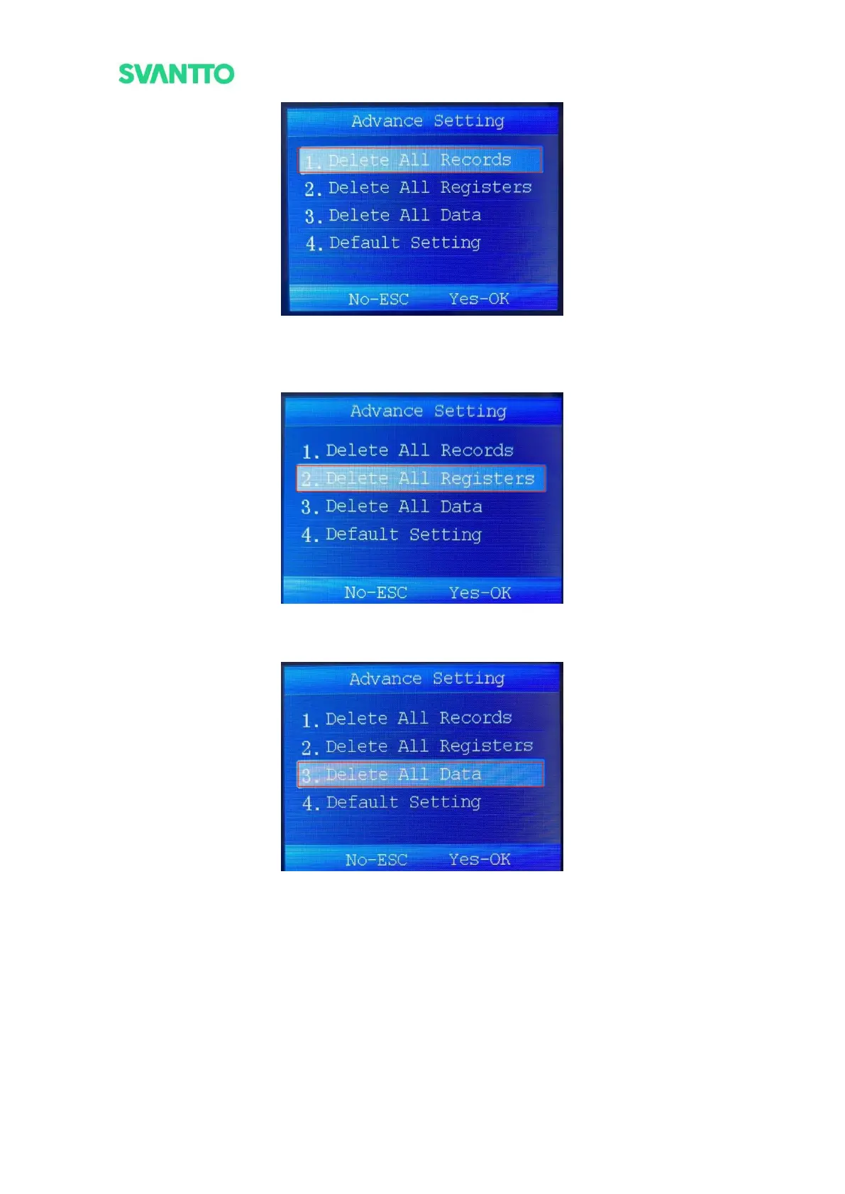 2.Delete all registered users in the machine, including their registered passwords, fingerprints, ID card