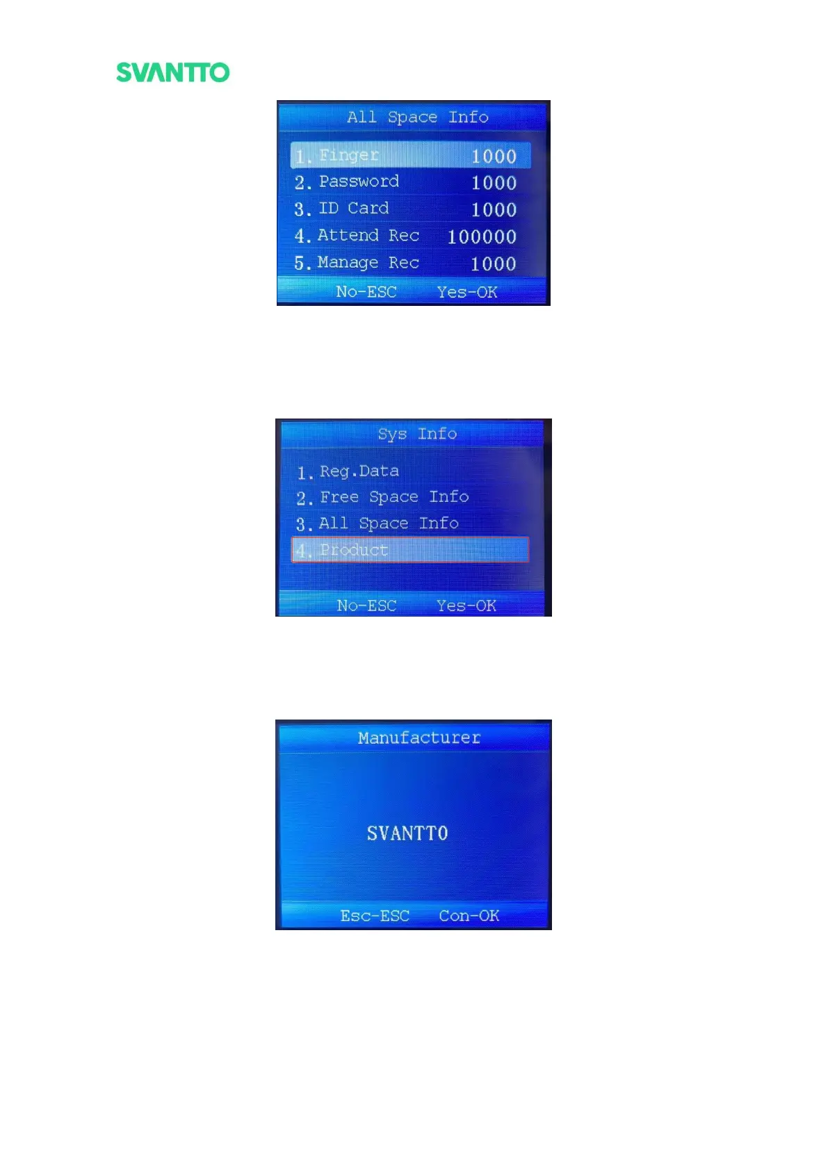 firmware version, etc. Select the [Product] and then press the [OK] key to enter the “Product” interface.