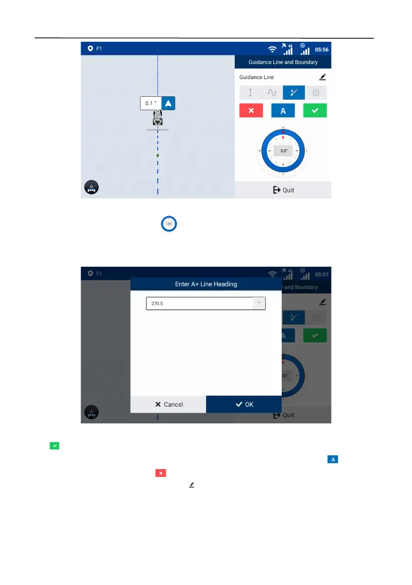 When creating a guidance line, you can tap in the upper right corner to change the guidance