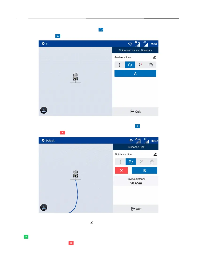 Access the guidance line creation screen, and tap to select the curve mode. Drive the vehicle to