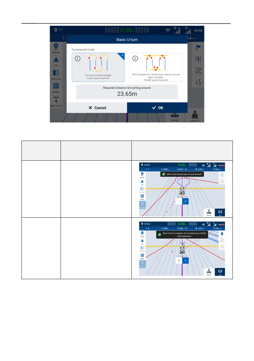 1. When the working width is greater than twice of the turning radius, the final turnaround path is