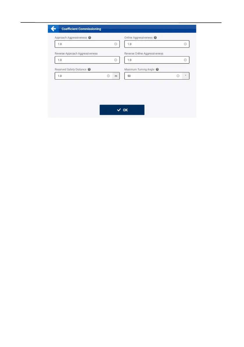 status, and adjust the steering gain parameters. The P value must be in the range of 4–125, and is