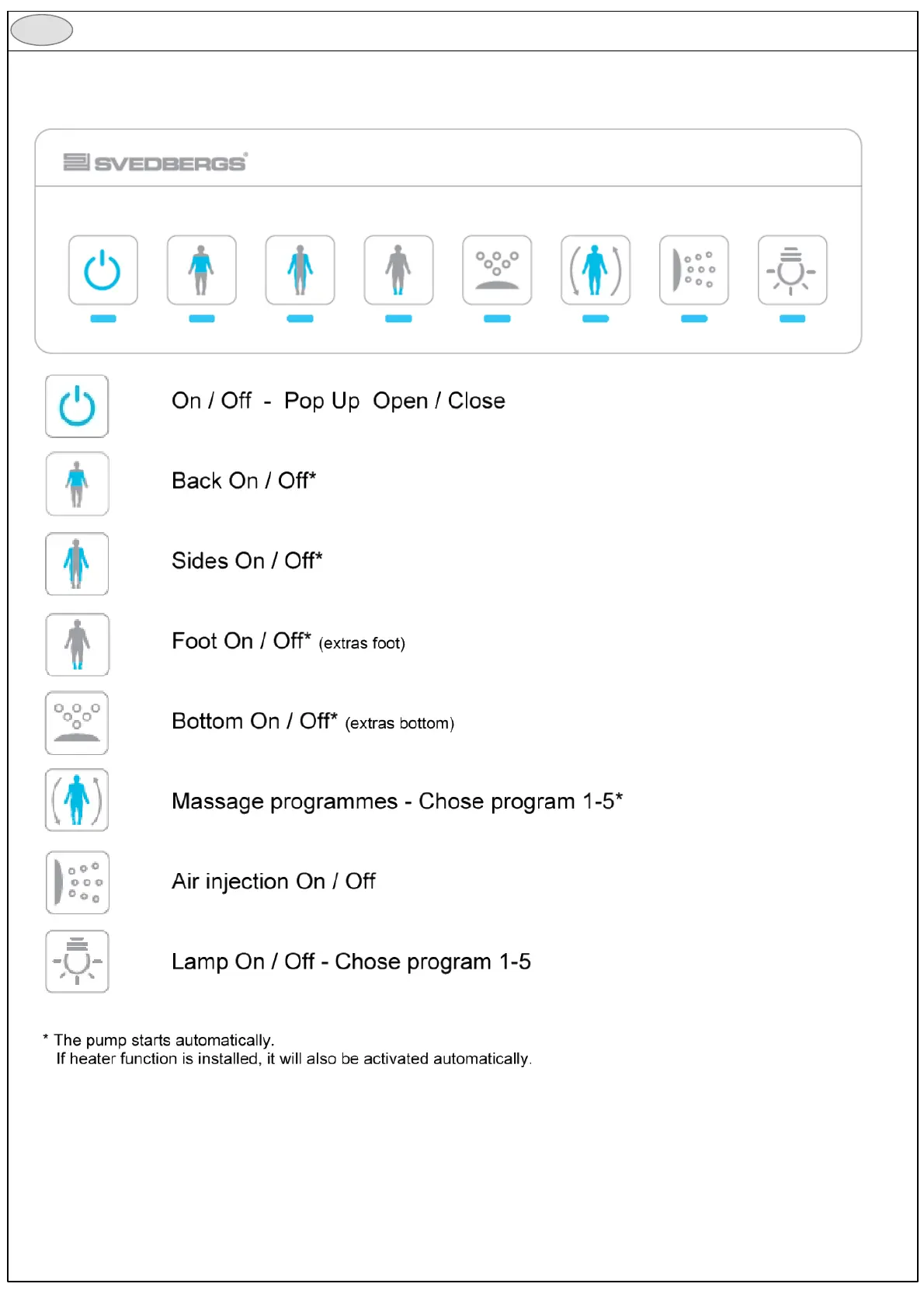 the massage jets. The buttons are clearly marked, and an integrated light shows which functions are active.