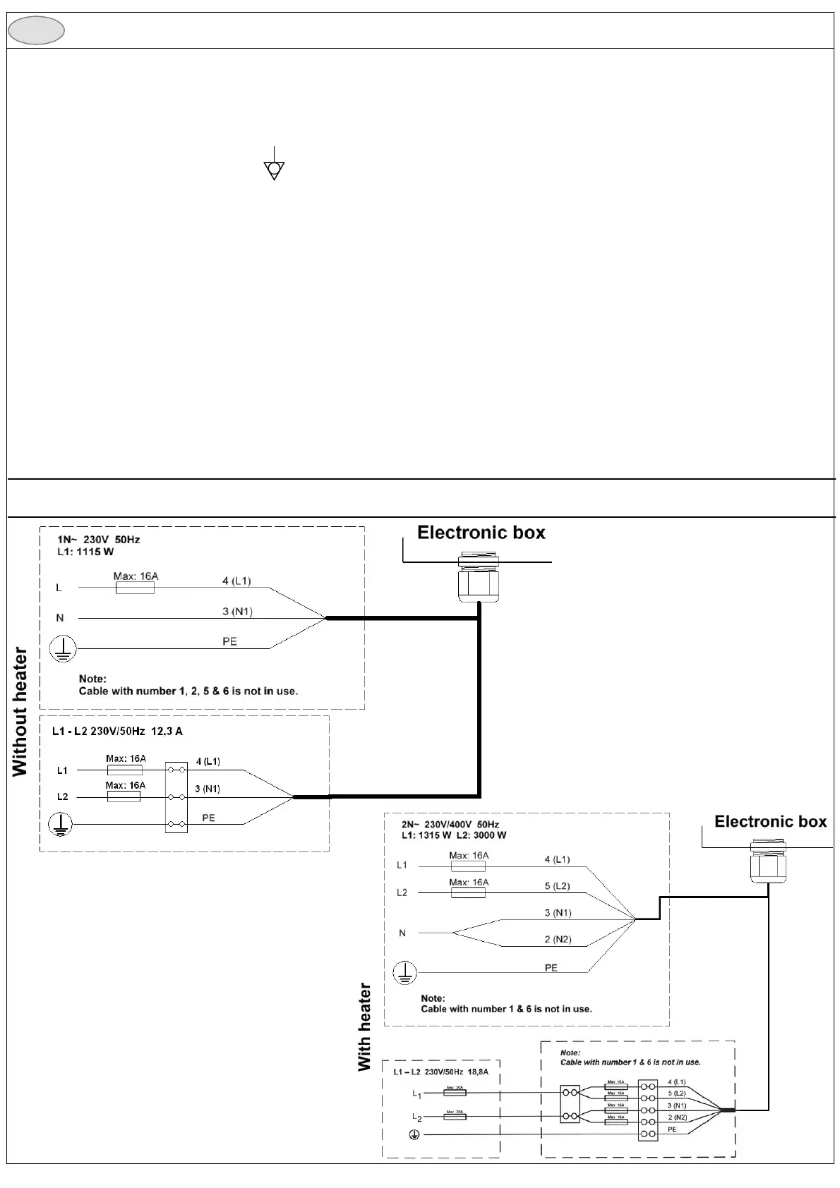 - OBS! El tilslutningen skal utføres som fast installasjon å får bare utføres av godkjent installatør.