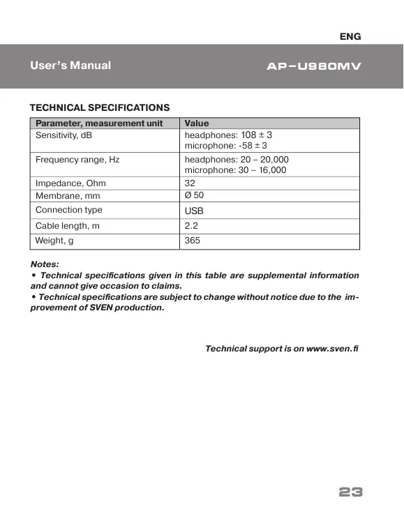 Technical support is on www.sven.fi
