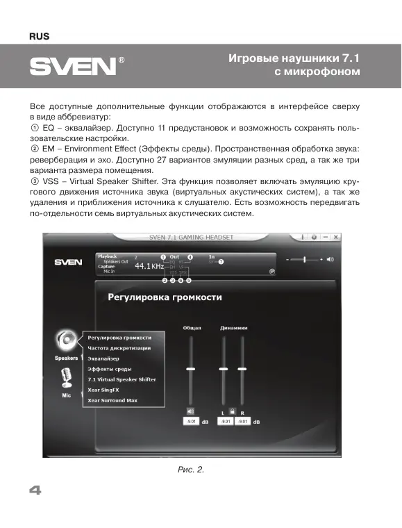 c VSS – Virtual Speaker Shifter. Эта функция позволяет включать эмуляцию кру-