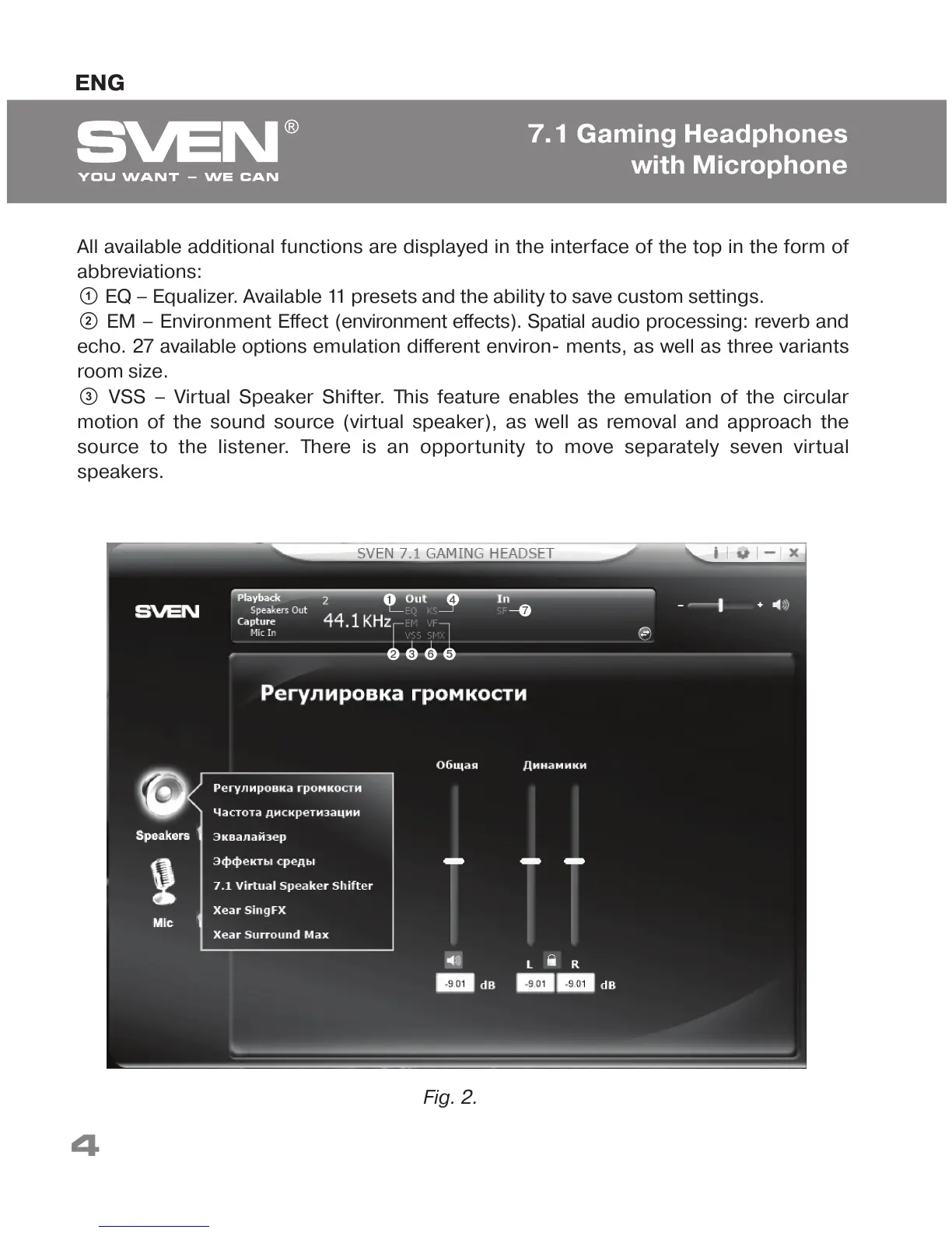 c VSS – Virtual Speaker Shifter. This feature enables the emulation of the circular