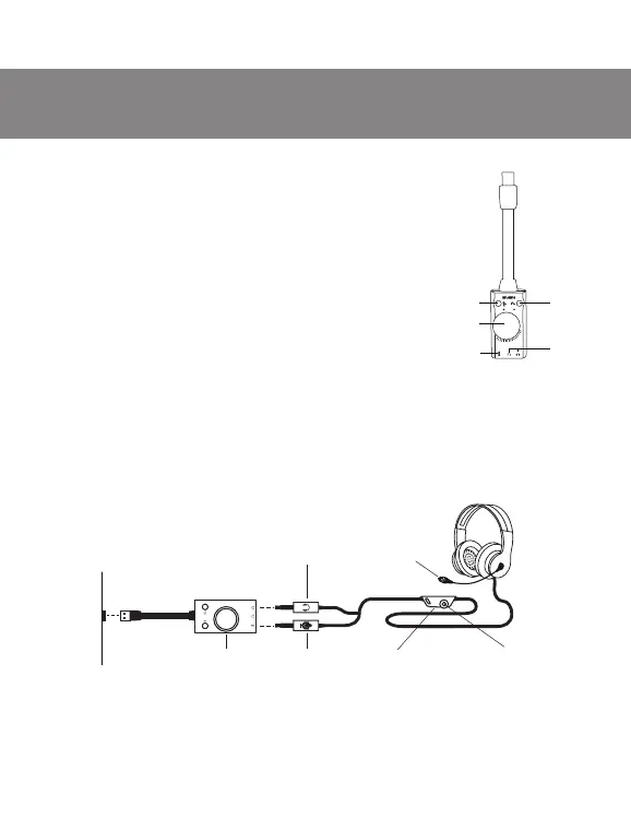 to the USB connector of the source (computer, laptop, etc.), and headphones to the