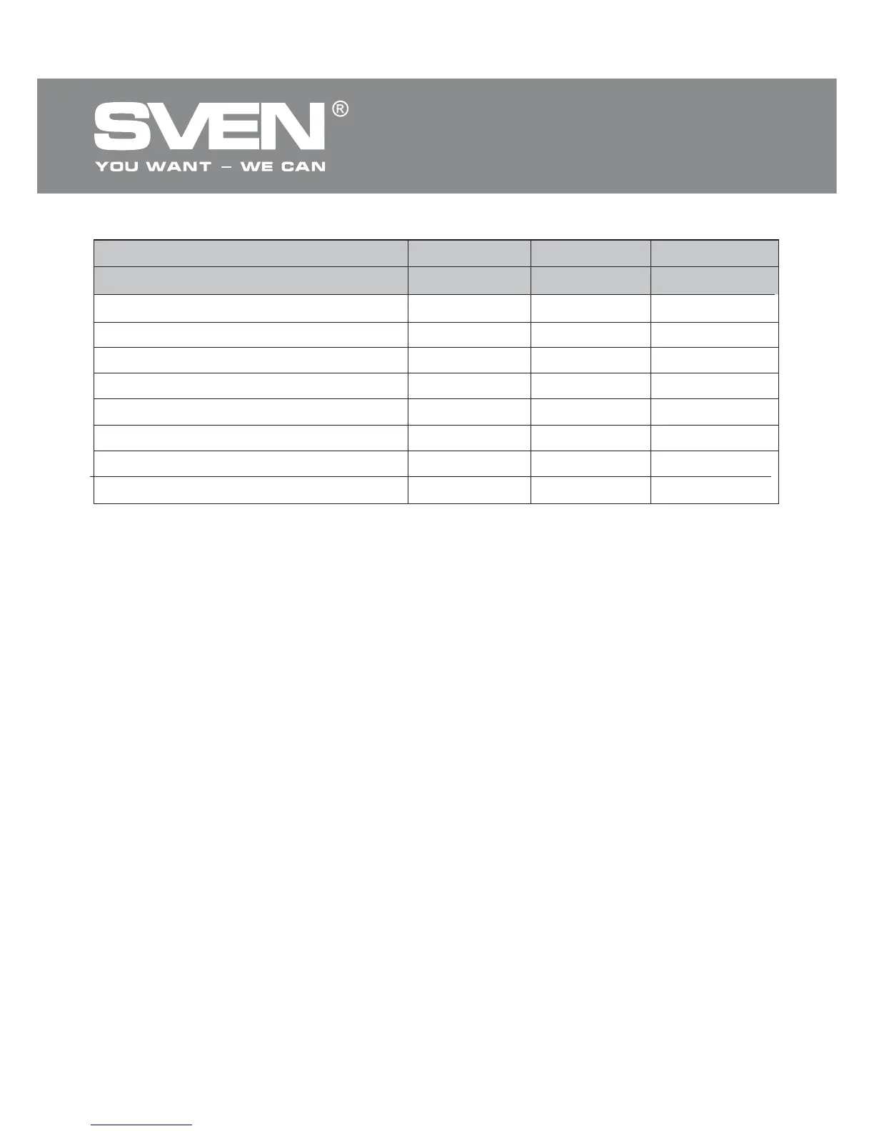 • Продукция ТМ SVEN постоянно совершенствуется. По этой причине технические ха-