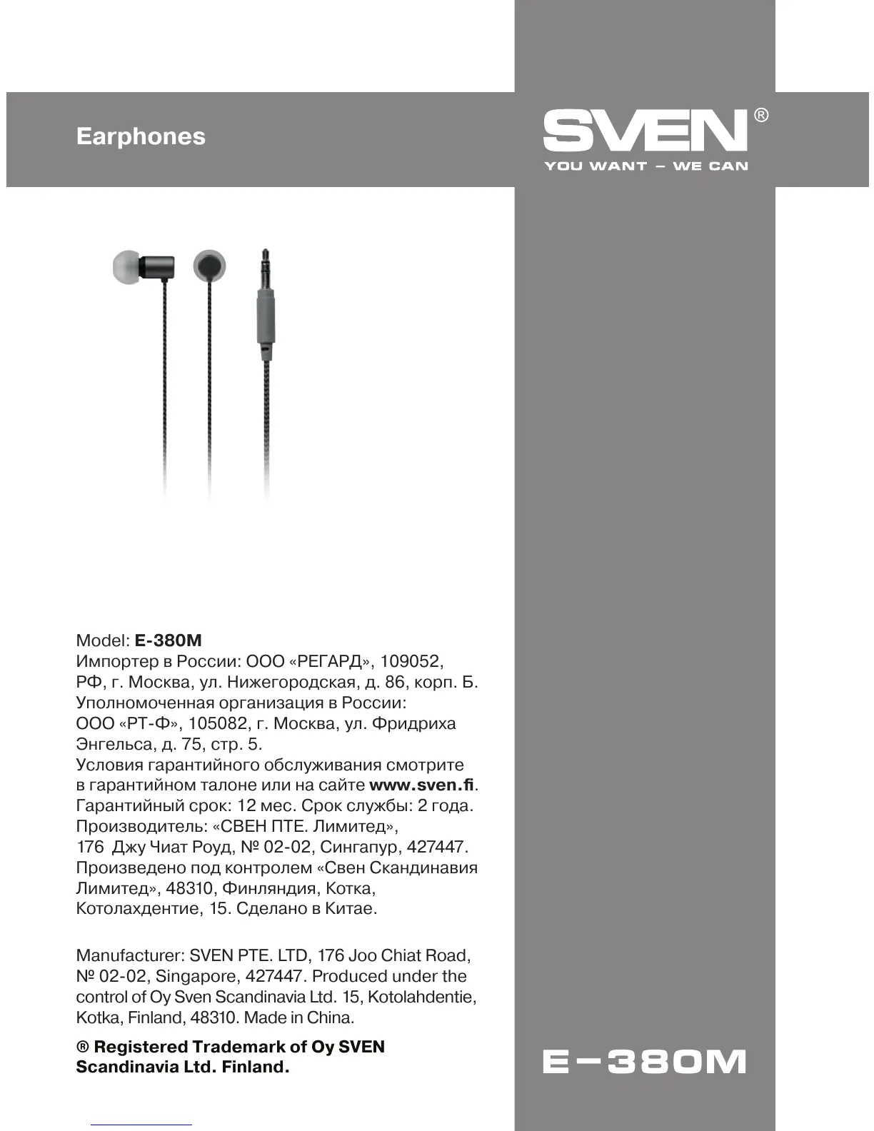 Manufacturer: SVEN PTE. LTD, 176 Joo Chiat Road,