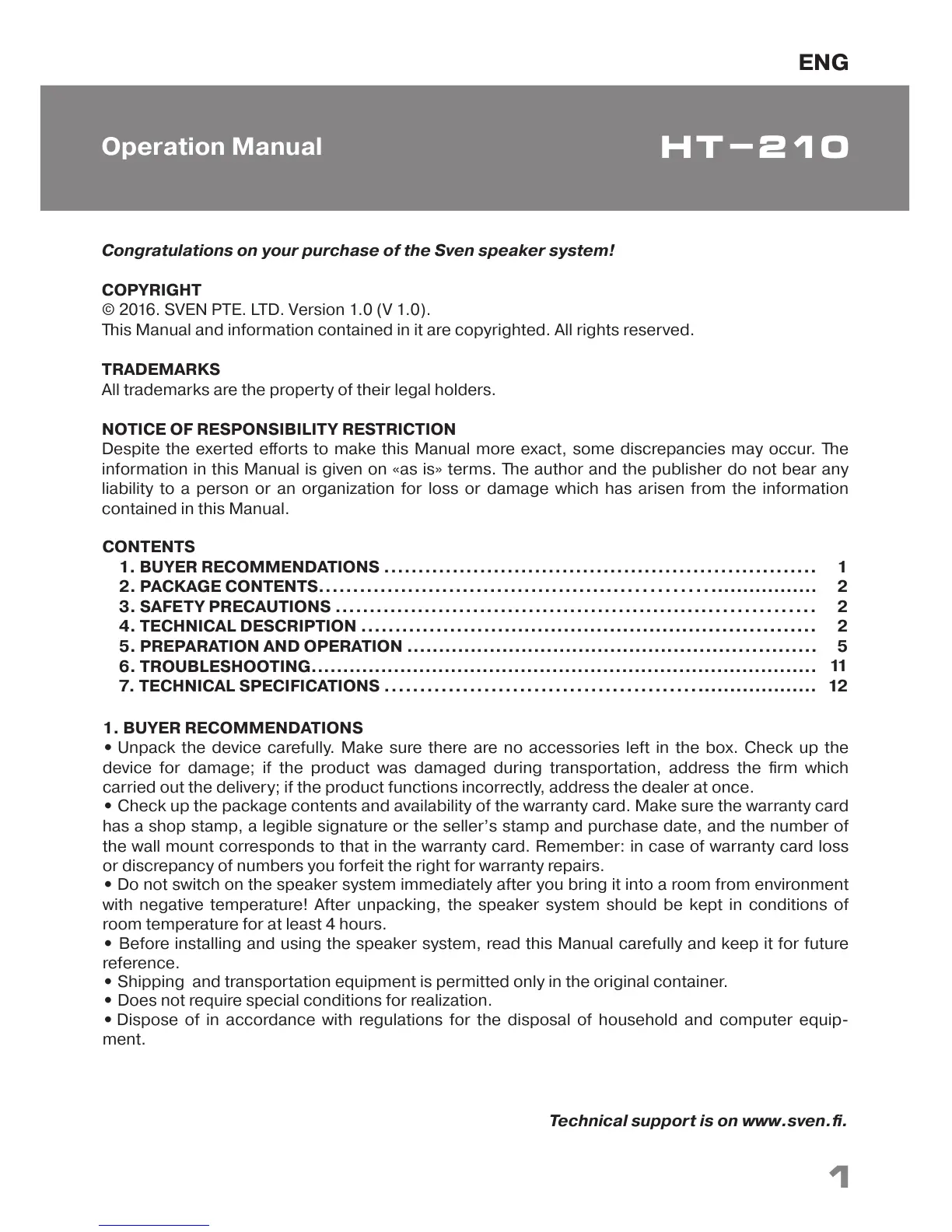 © 2016. SVEN PTE. LTD. Version 1.0 (V 1.0).