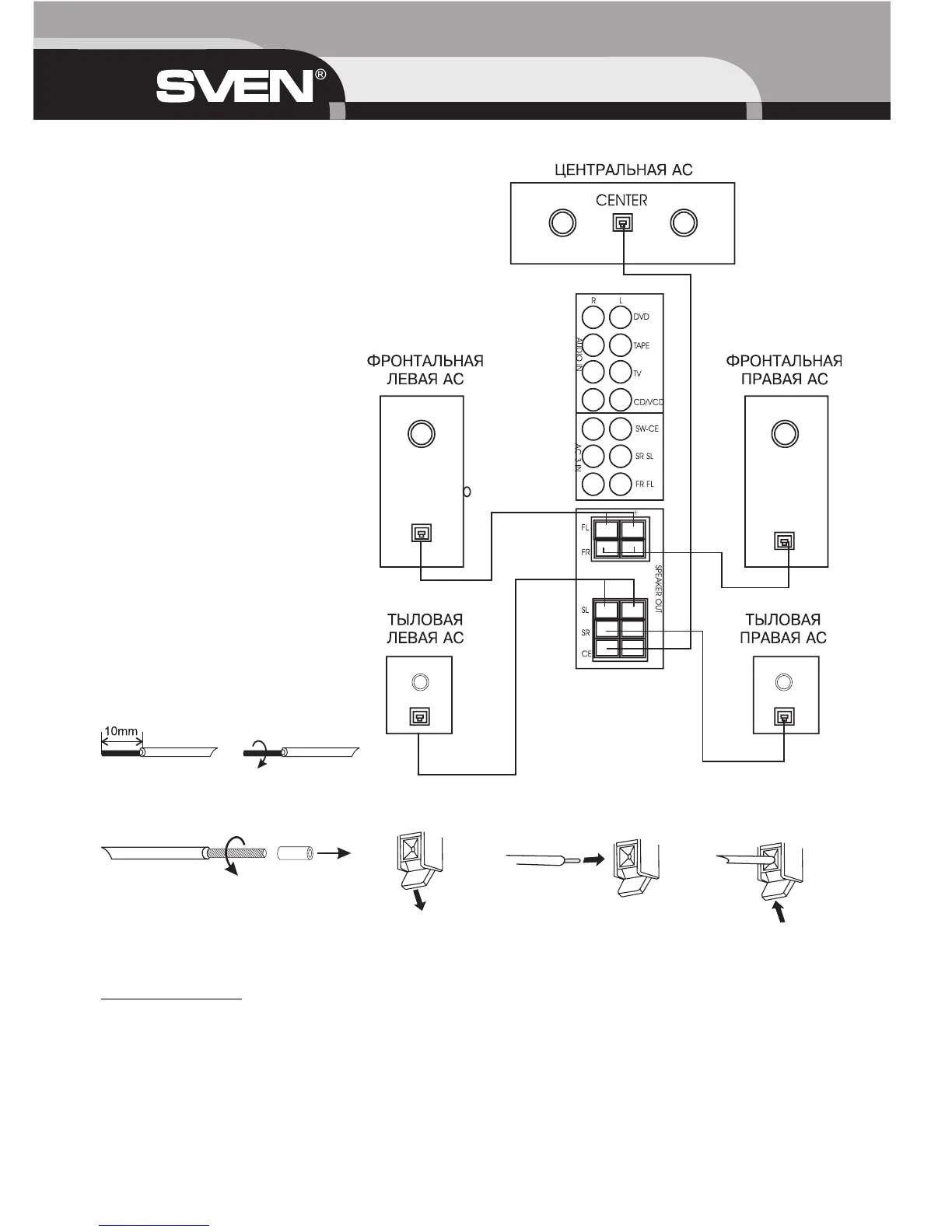 Ïîäêëþ÷åíèÿ àêóñòè÷åñêîé ñèñòåìû ê óñèëèòåëþ ïðîâîäèòå â ñîîòâåòñòâèè ñ ðèñóíêîì 6.