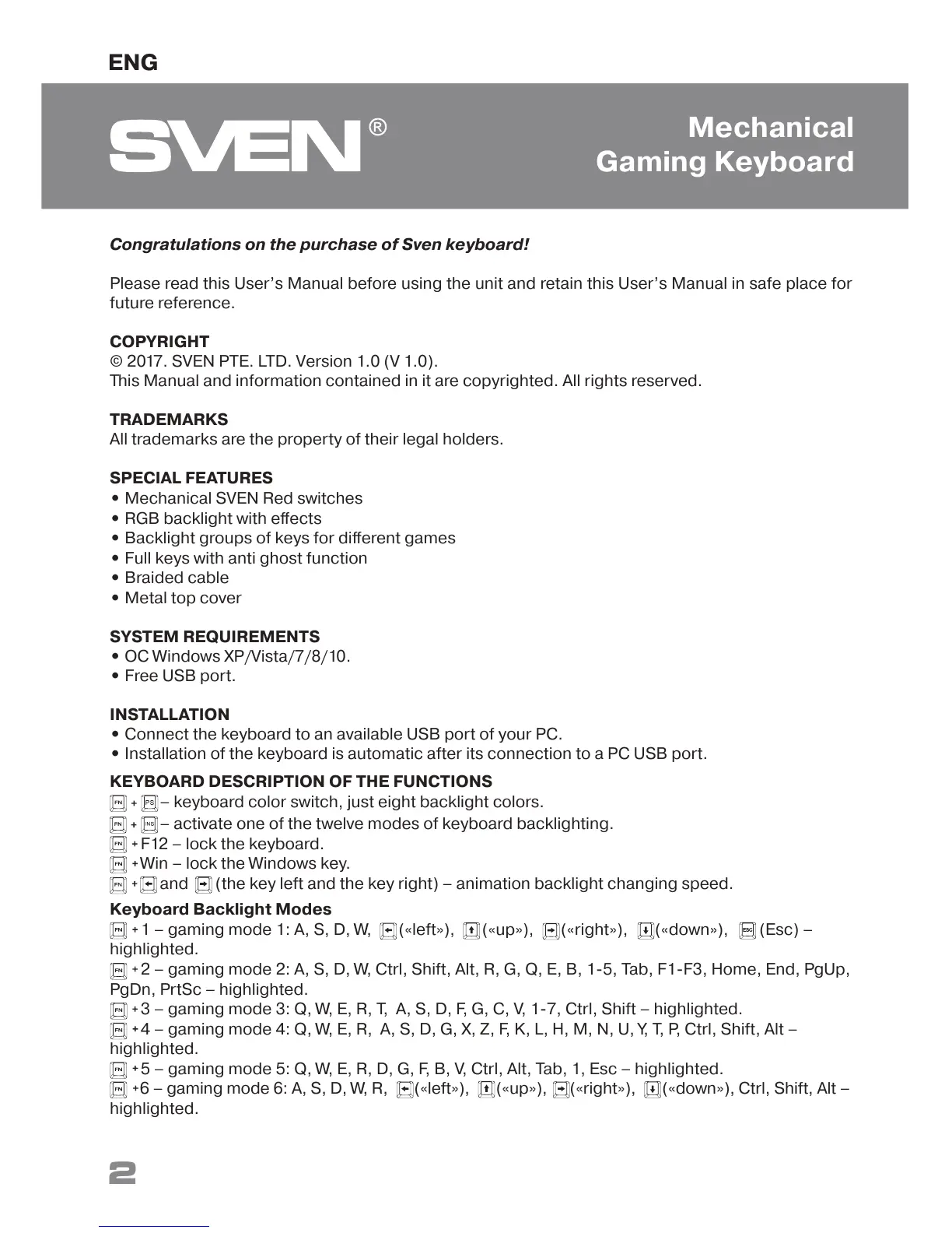© 2017. SVEN PTE. LTD. Version 1.0 (V 1.0).
