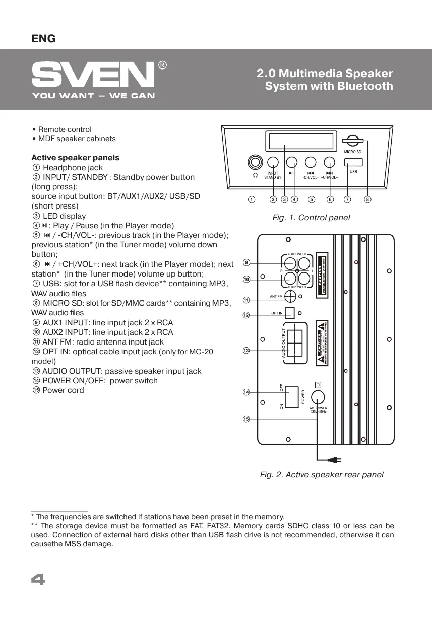 ** The storage device must be formatted as FAT, FAT32. Memory cards SDHC class 10 or less can be