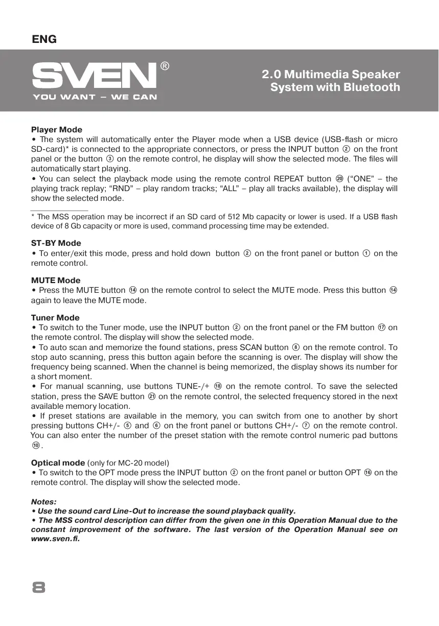 • The MSS control description can differ from the given one in this Operation Manual due to the