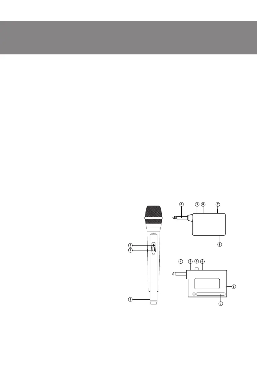 • Receiver with LED status indicator, antenna and audio output jack (6.5 mm)