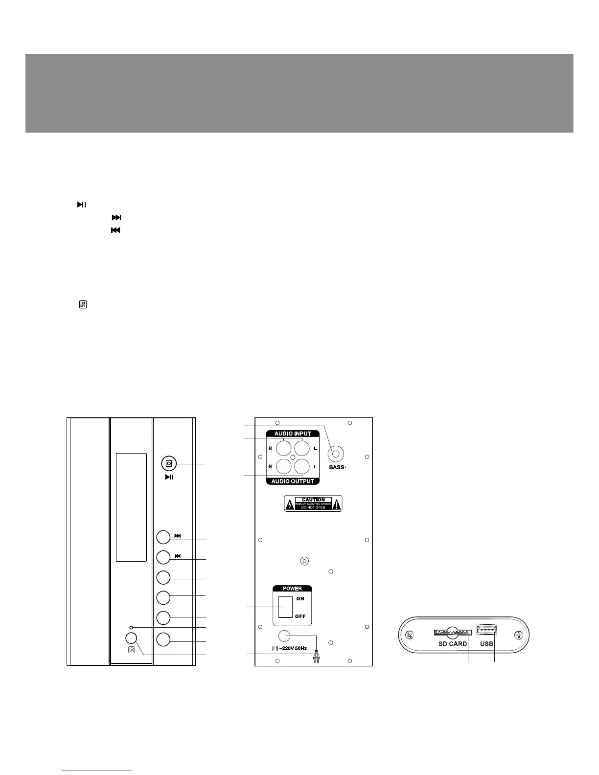 o SD CARD: slot for connecting an SD card containing МР3 audio files
