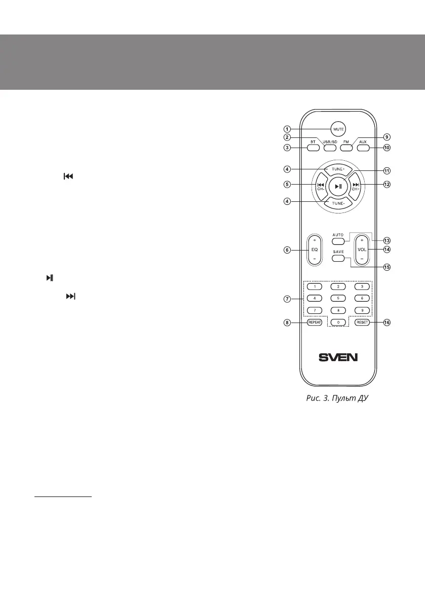 b USB/SD: кнопка включения режима МР3-проигрывателя