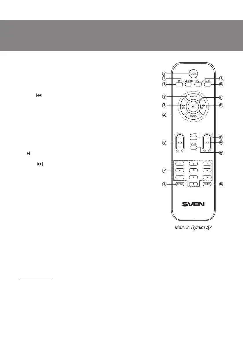 b USB/SD: кнопка вмикання режиму МР3-програвача з USB/