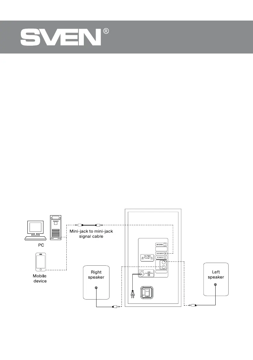 MS-2020 speaker system can be connected to virtually any audio devices: PCs, laptops, etc. (see