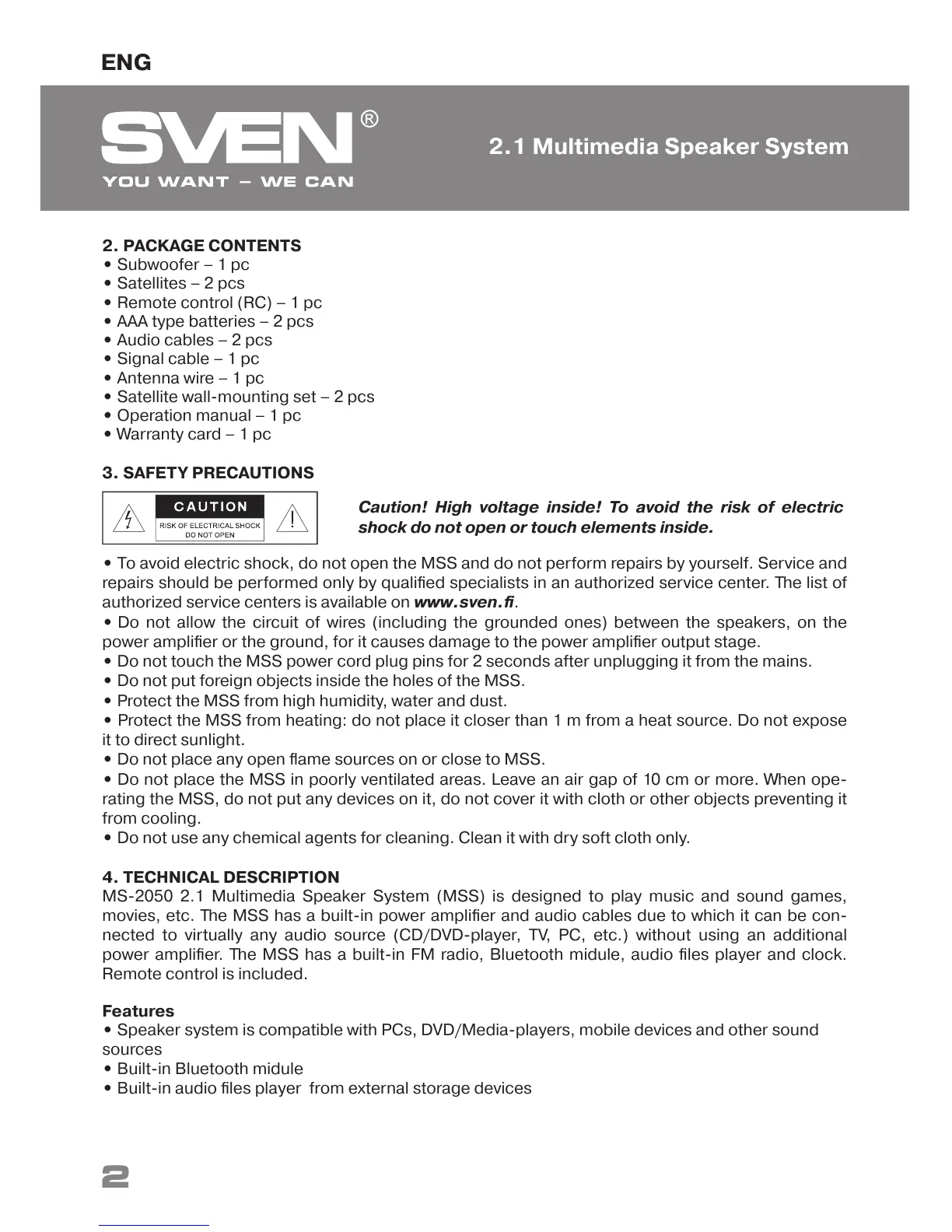 movies, etc. The MSS has a built-in power amplifier and audio cables due to which it can be con-